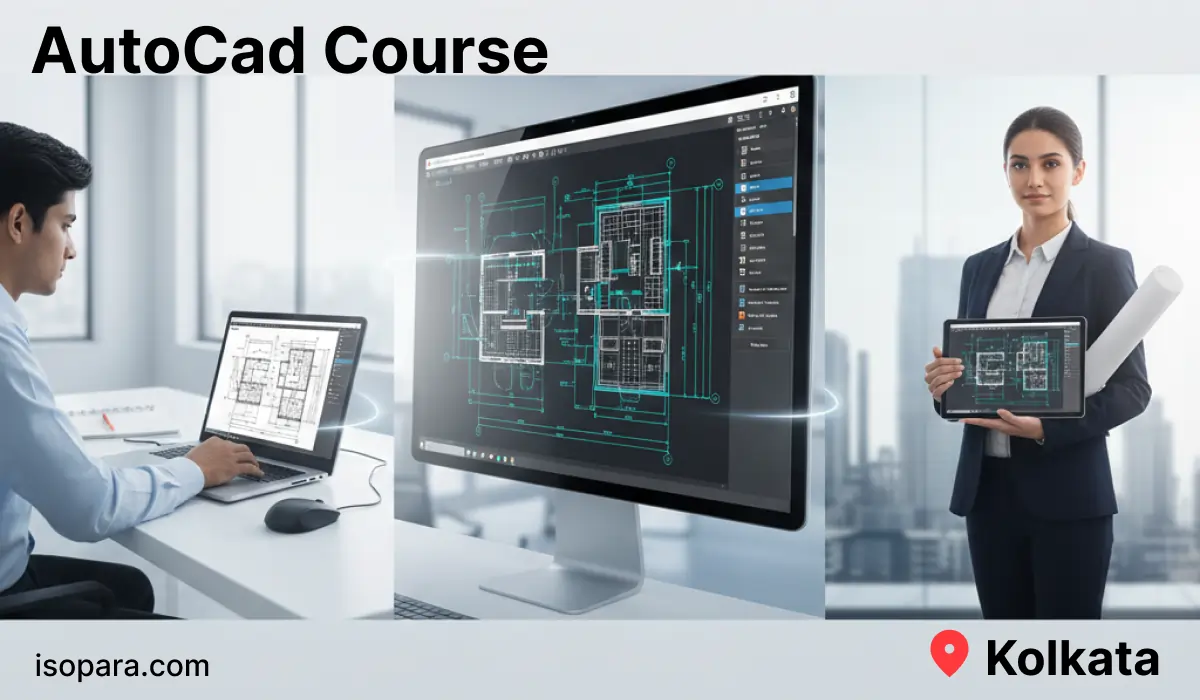 AutoCAD training in Kolkata is designed for engineering students, diploma holders, architects, and working professionals who want to build strong drafting and design skills. This AutoCAD course in Kolkata focuses on hands-on learning using real construction, mechanical, and architectural drawings commonly used in live industry projects. Learners searching for the best AutoCAD training institute in Kolkata gain practical exposure aligned with current professional