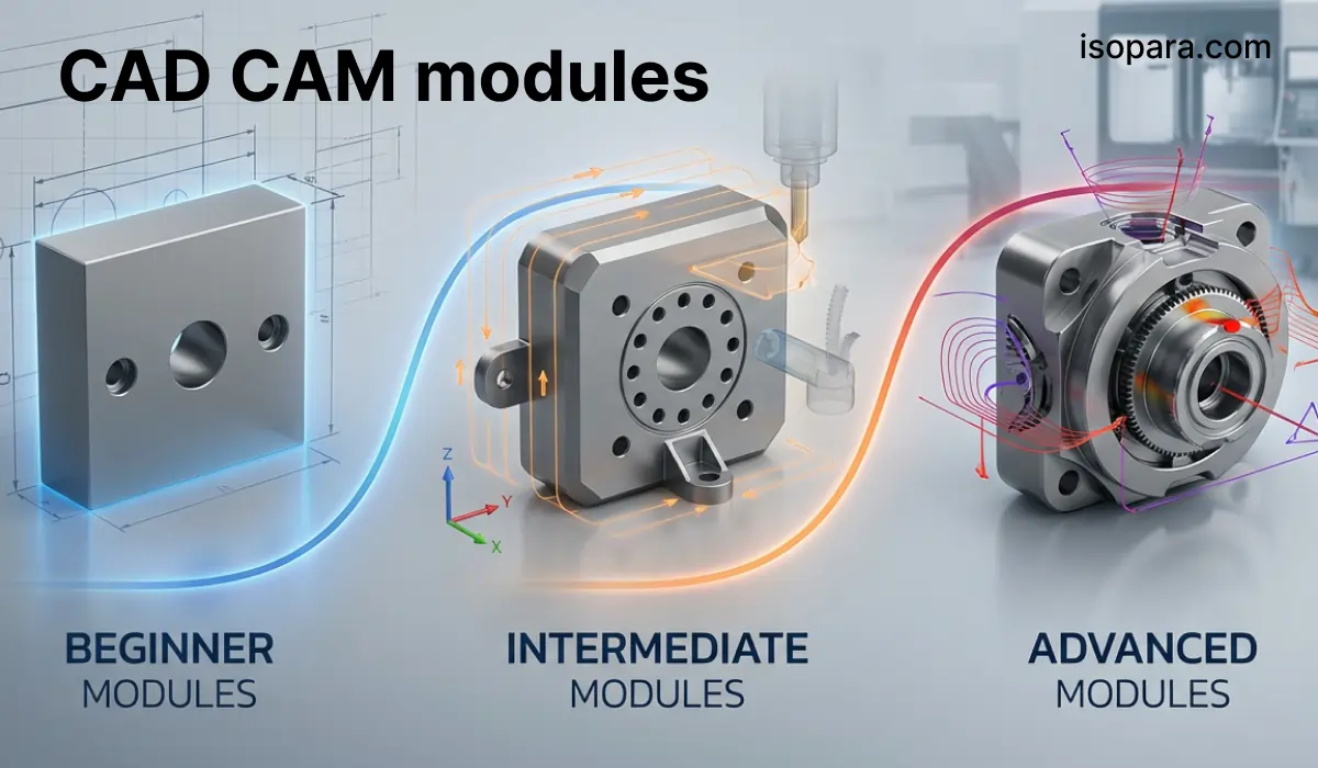 CAD CAM Modules are designed to help learners understand design and manufacturing concepts step by step. These Modules in CAD CAM cover essential tools, workflows, and practical applications used in industry. The CAD CAM Course Modules are structured to support beginners as well as experienced learners. The CAD CAM Modules and Syllabus provide a clear learning path from fundamentals to advanced topics. Through CAD CAM Training Modules, learners gain hands-on