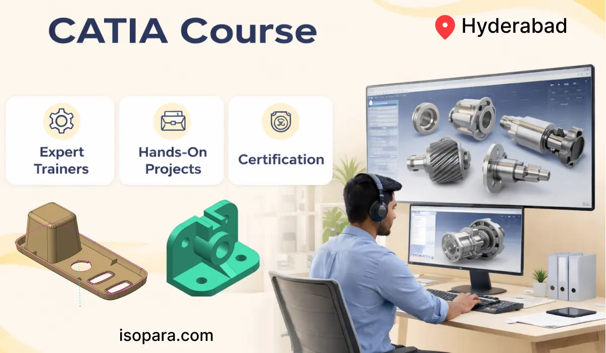 The CATIA Course in Hyderabad is designed for students and professionals seeking practical, job-oriented design skills. This CATIA Course in Hyderabad focuses on real engineering workflows, making the CATIA Training in Hyderabad suitable for automotive, mechanical, and product design roles. The CATIA Training in Hyderabad emphasizes hands-on learning rather than only software commands. Isopara is a trusted CATIA Institute in Hyderabad, known for its structured and practical approach. As a learner-focused CATIA Training Institute in Hyderabad, the institute delivers consistent training quality across batches. Many learners searching for the Best CATIA Training