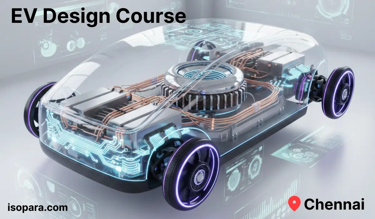 EV design course Chennai is designed for students and professionals who want to build a strong career in the electric vehicle industry. This electric vehicle design course Chennai focuses on real EV technologies used in automotive manufacturing and electric mobility sectors. Through structured EV design training Chennai, learners gain practical knowledge of EV architecture, battery systems, and electric powertrain design. The main objective of the EV design course