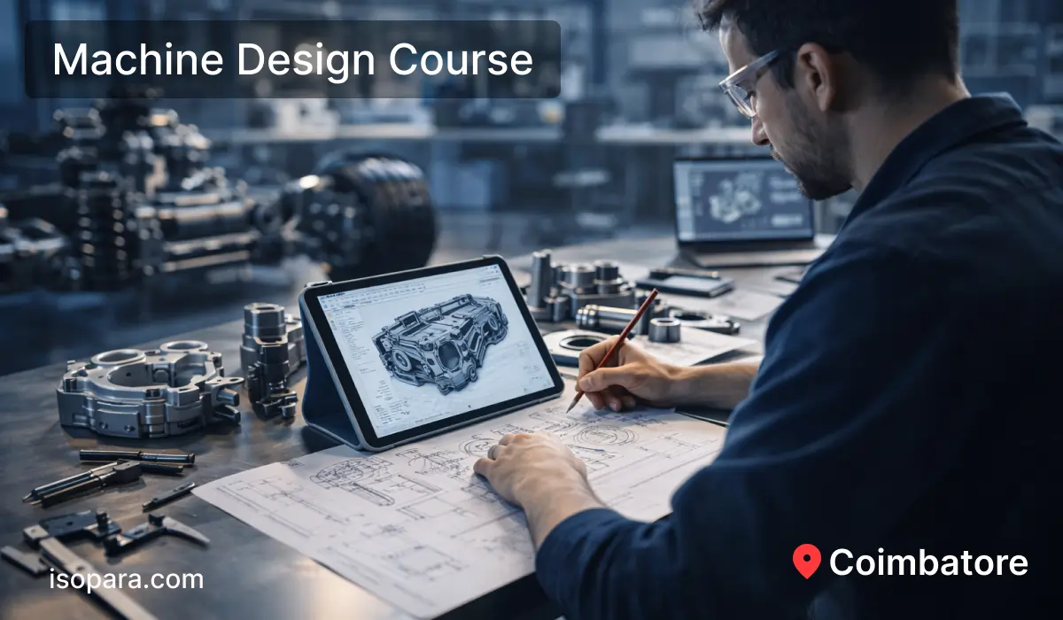 A machine design course in Coimbatore is essential for mechanical engineers who want to work on real industrial machines used in manufacturing, automation, and production environments. Today’s industries expect engineers to design machines that perform reliably under load, motion, vibration, and long service life. A structured machine design course in Coimbatore helps engineers move beyond academic theory and develop applied engineering judgment. This practical