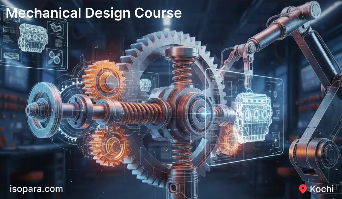 Mechanical design training Kochi is designed for students and professionals who want to build a strong and stable career in core mechanical engineering. This mechanical design course Kochi focuses on real-world design practices used in manufacturing, automotive, and industrial engineering sectors. Through structured mechanical design classes Kochi, learners gain hands-on experience in component modeling, assembly design, and engineering drawings. The primary