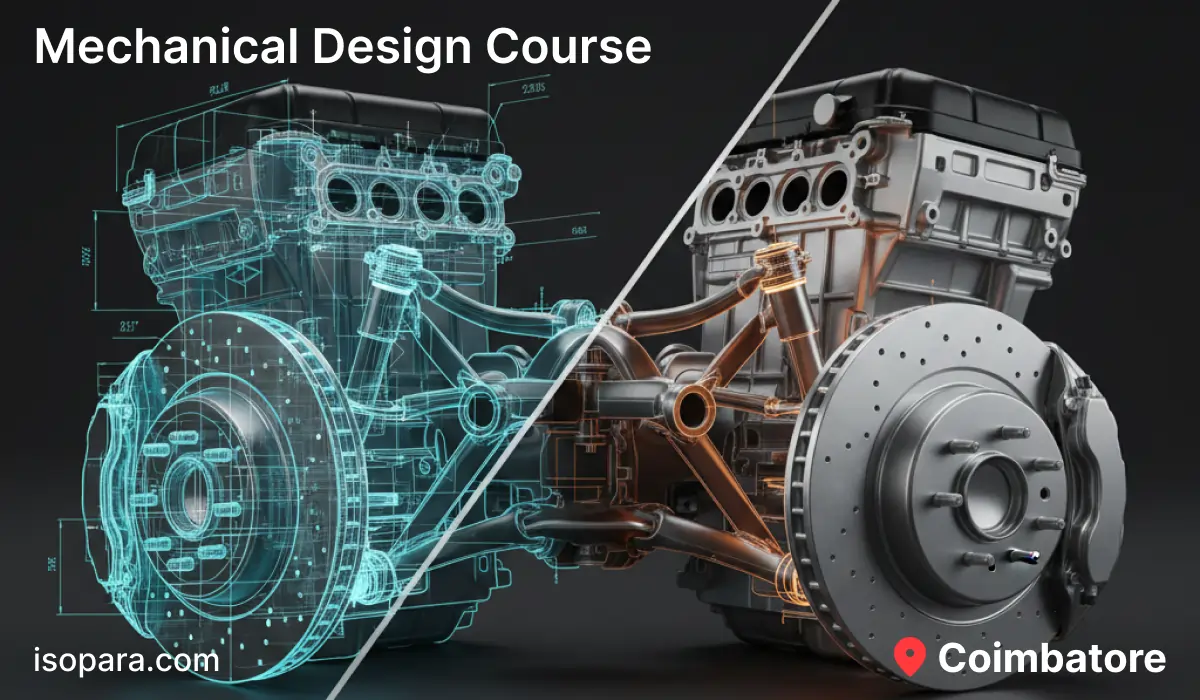 Mechanical design training Coimbatore is designed for engineering students and professionals who want to gain practical design expertise required in real industrial environments. This mechanical design course Coimbatore focuses on how mechanical components and systems are planned, modeled, and documented according to industry standards. Through structured mechanical design classes Coimbatore, learners work on real design scenarios involving parts, assemblies, and