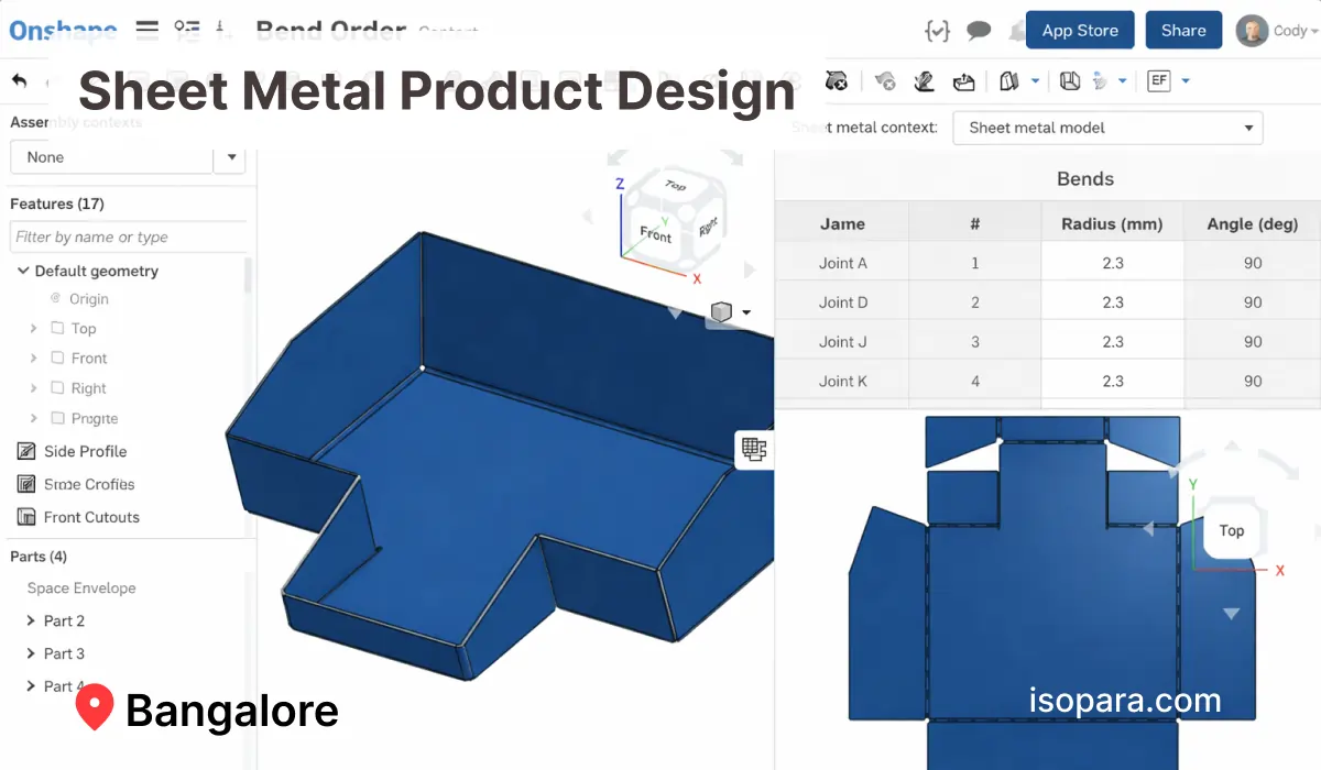A professional sheet metal product design course bangalore helps students understand how fabricated components are designed before manufacturing. Through structured sheet metal design training bangalore, learners practice bend allowance, flange development, and flat pattern creation used in real production work. Students attending sheet metal product design classes bangalore work on practical enclosure components rather than only watching demonstrations. A reputed
