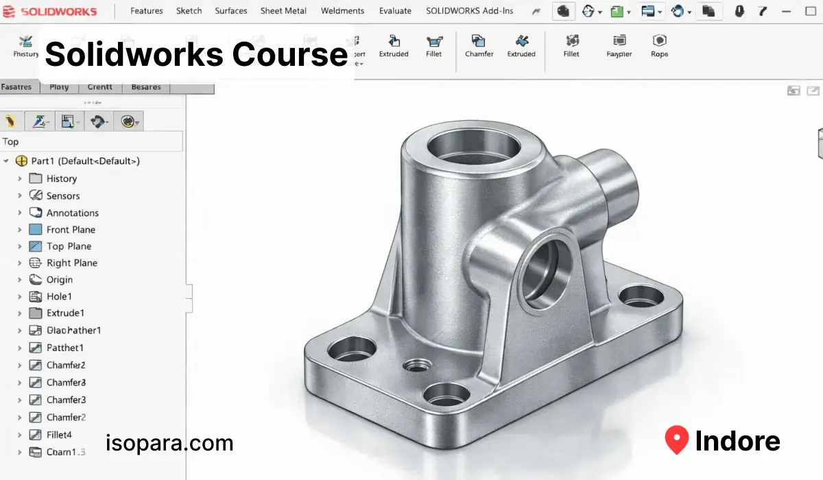 The beginning of solidworks classes in indore focuses on building a strong base in sketch constraints, feature order, and modeling workflow so students clearly understand design intent rather than memorizing commands. A guided solidworks course in indore teaches how to create accurate geometry and also how to modify it without damaging the model structure. Choosing the best solidworks training institute in indore ensures learners receive continuous instructor feedback and regular practice sessions. Completing a solidworks certification course in indore proves that the learner can independently create technical designs used in industries. A comprehensive
